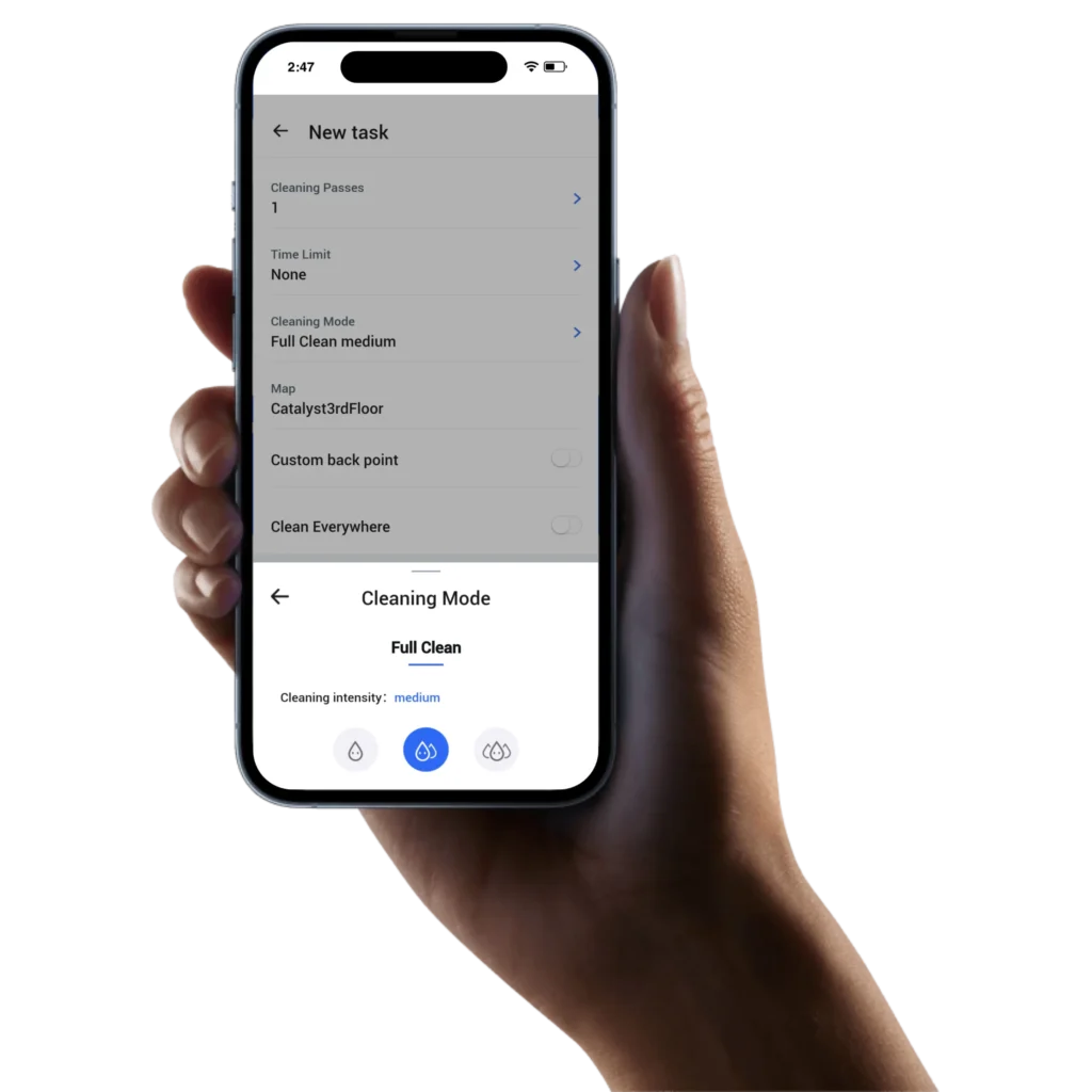 Plan your cleaning sessions directly on the app, and watch as the robot autonomously executes its tasks at your selected times.
