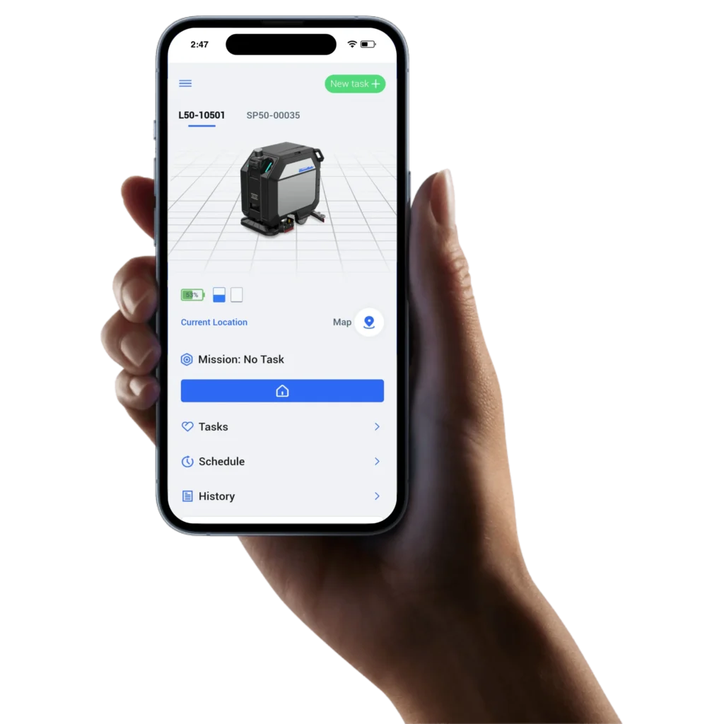 L50, the AI-Powered Scrubbing Robot, leads the way in cleaning technology. This scrubber is engineered to swiftly cover vast surface areas, reducing cleaning time significantly. Its remarkable pad pressure ensures thorough and efficient cleanliness, making it the go-to solution for all your cleaning tasks.