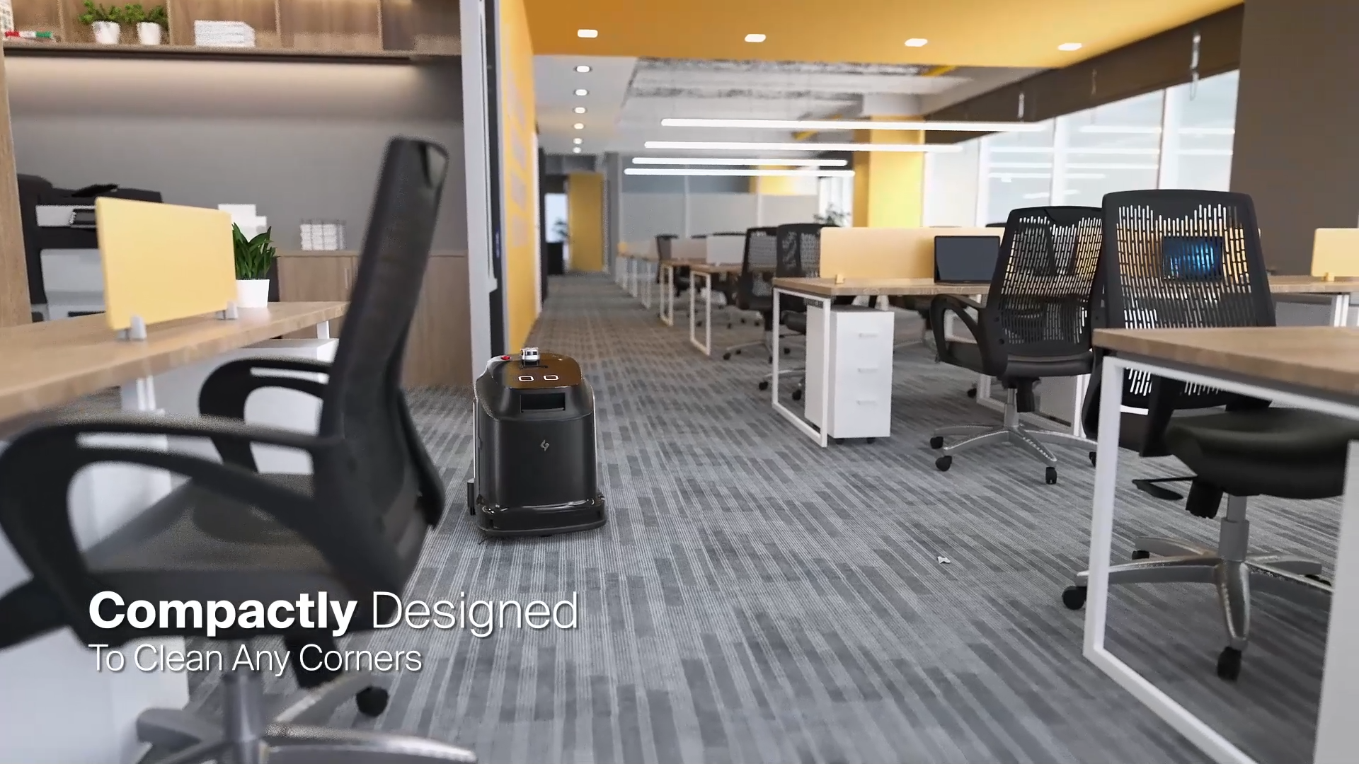 esigned to slip through narrow aisles and under tables . With a side brush and precision sensors, it cleans right up to the edges—down to 0 cm.