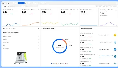 Visual reports on waste hotspots, cleaning coverage, stain persistence, task success, and maintenance frequency. Enables data-driven scheduling.
