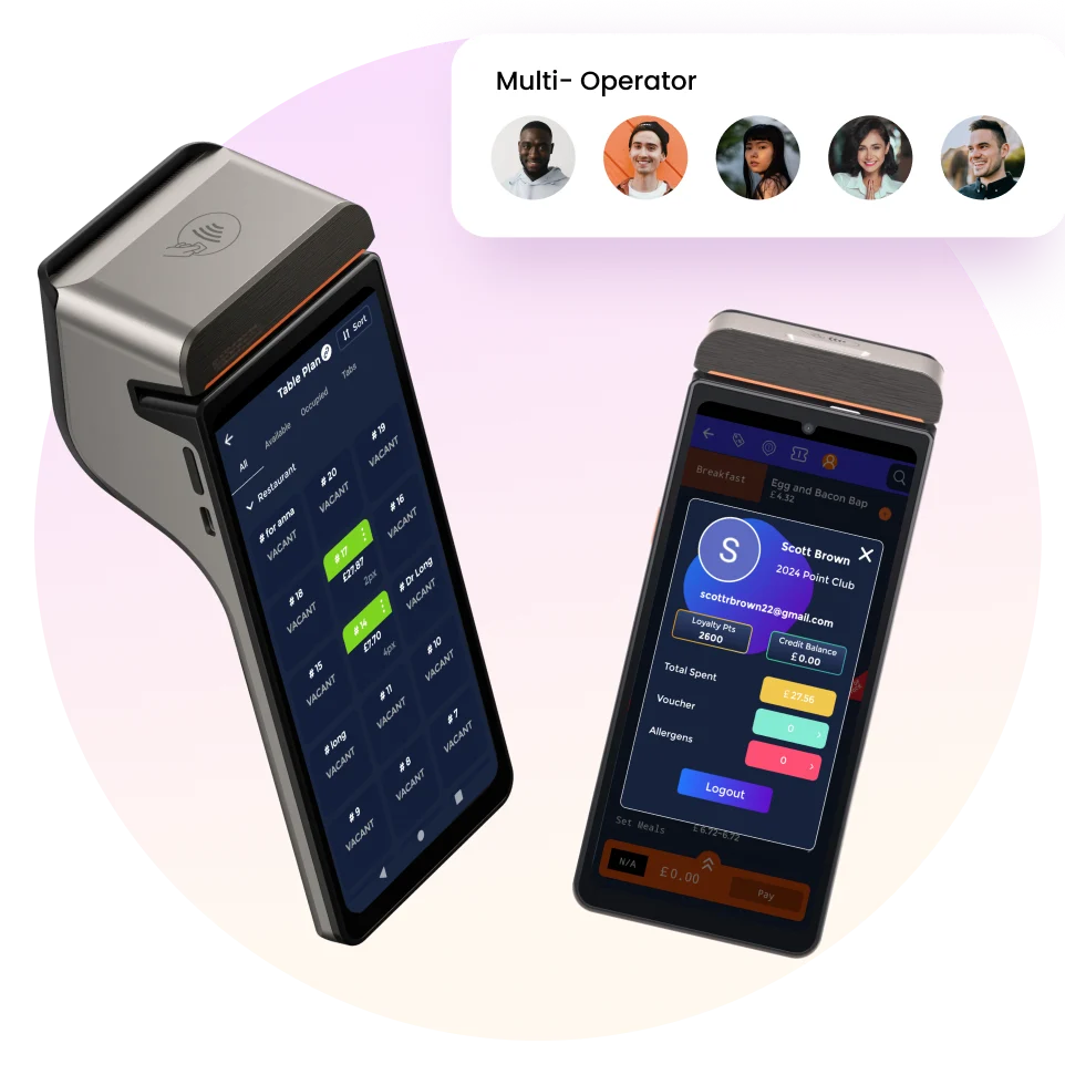 Our smart functionality within the handheld itself allows operators to process bills and transactions easier than ever before, bill splitting and applying discounts can be done in different ways and removes any risk of human error.
