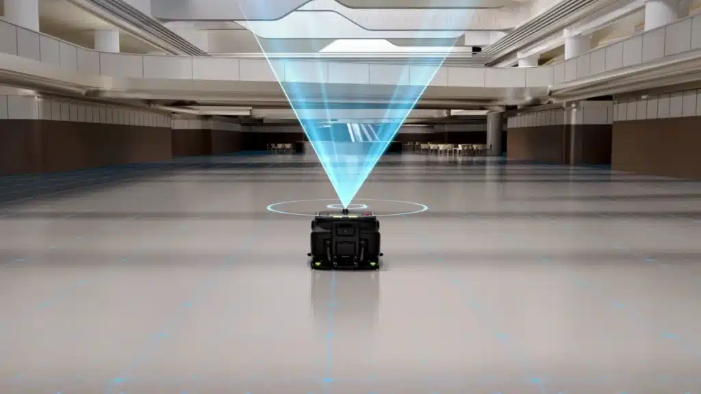 cleans large areas without supervision. Optimized cleaning routes reduce cleaning time compared to manual labor.