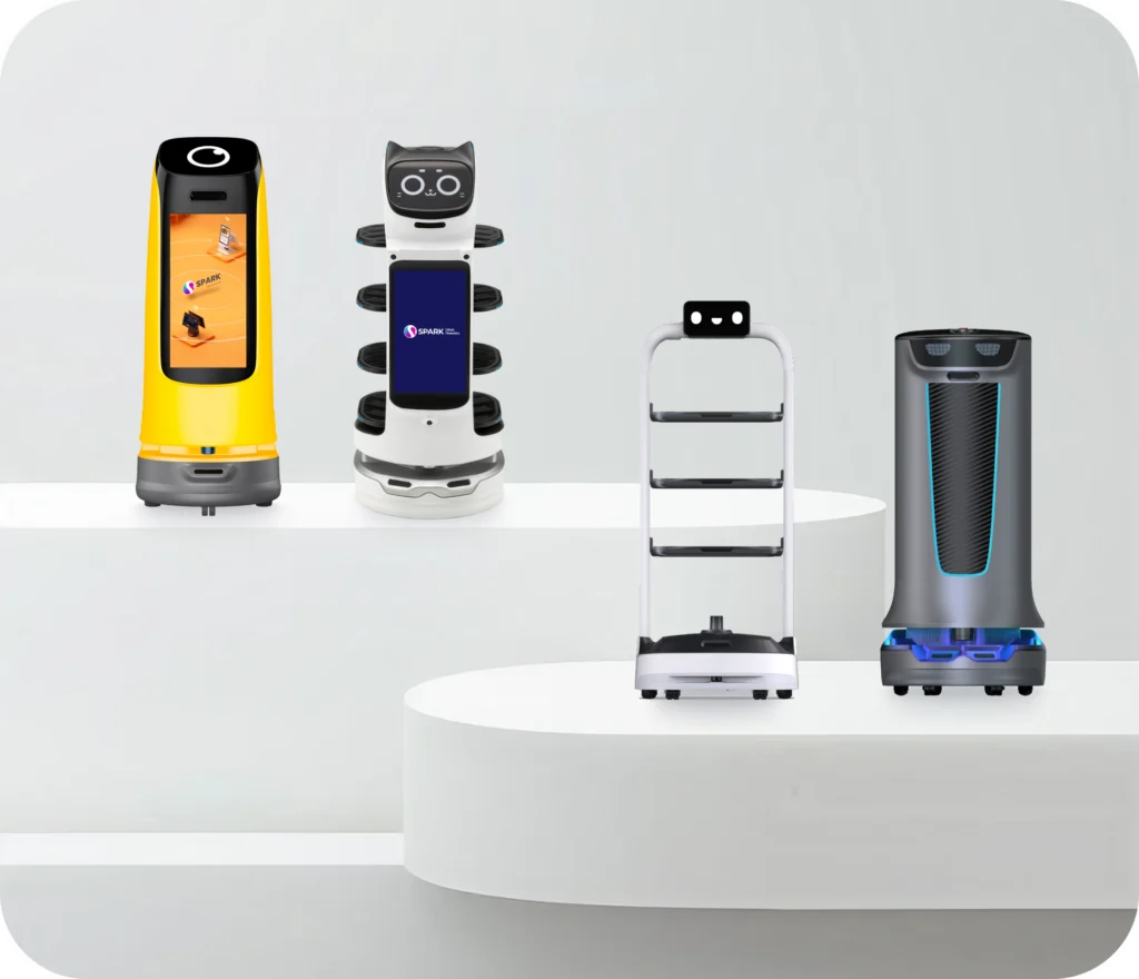 At SPARK, our robots represent a leap towards a future where automation seamlessly integrates with human interaction. From enhancing customer experiences to optimising internal workflows, our diverse range of service robots can meet the unique needs of various industries and settings.